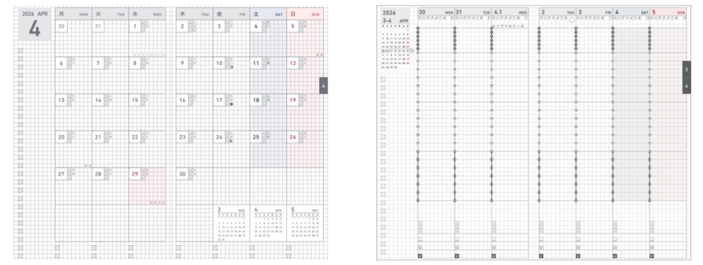 (左から)「月間ブロック」「週間バーチカル」