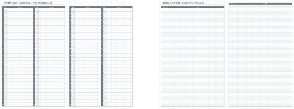 「今年やりたい100のリスト」「お気に入りの言葉」