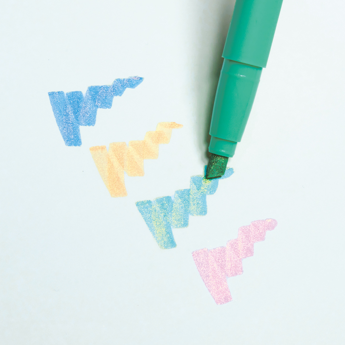ペン先はマーカータイプで、線をひいたり塗ったり、デコレーションにも使いやすい仕様。輝きのあるイラストや装飾が簡単に仕上がり、華やかで実用的なラメマーカーだ。