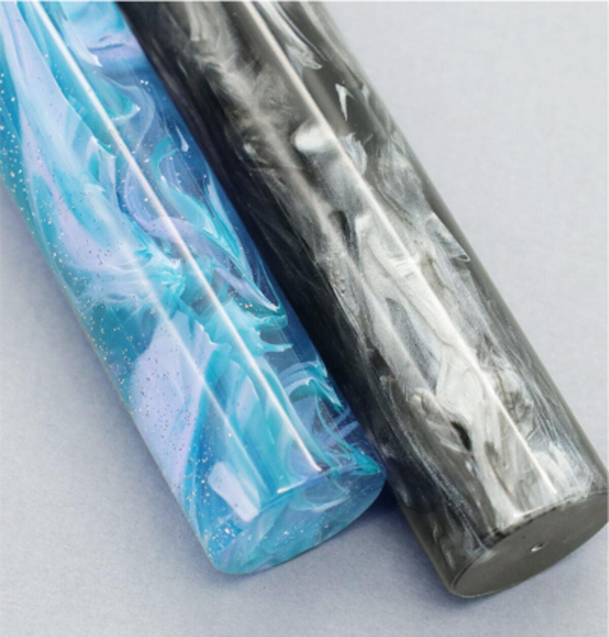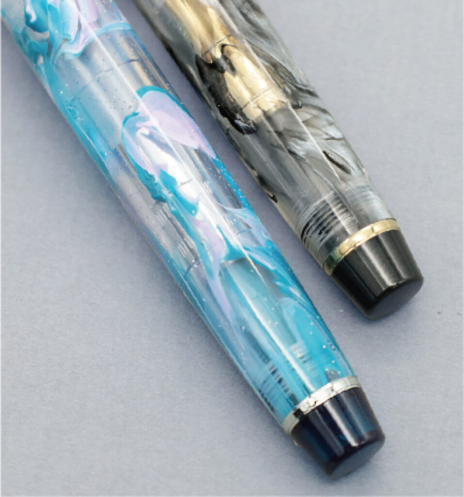 透明ベースの国産アクリル切削材を使用し、マーブル柄を万年筆の“顔” であるペン先を覆うベールに見立て、ベール(veil)と色(iro)を組み合わせた「ヴェイリオ(VEILIO)」シリーズ。