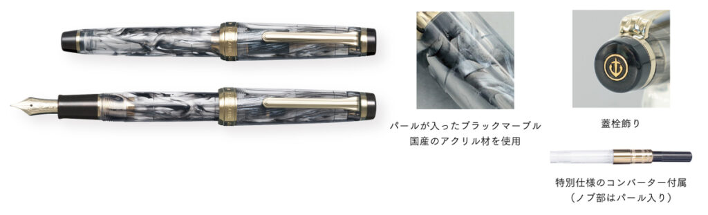 本体カラーに合わせた特別仕様のコンバーターを付属しており、色の組み合わせの違和感なく使用が可能。今回、パールブラックに付属するコンバーターはノブの樹脂にパールを加えた仕様となっている。