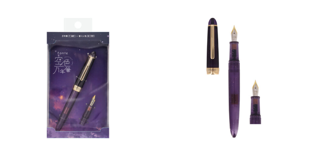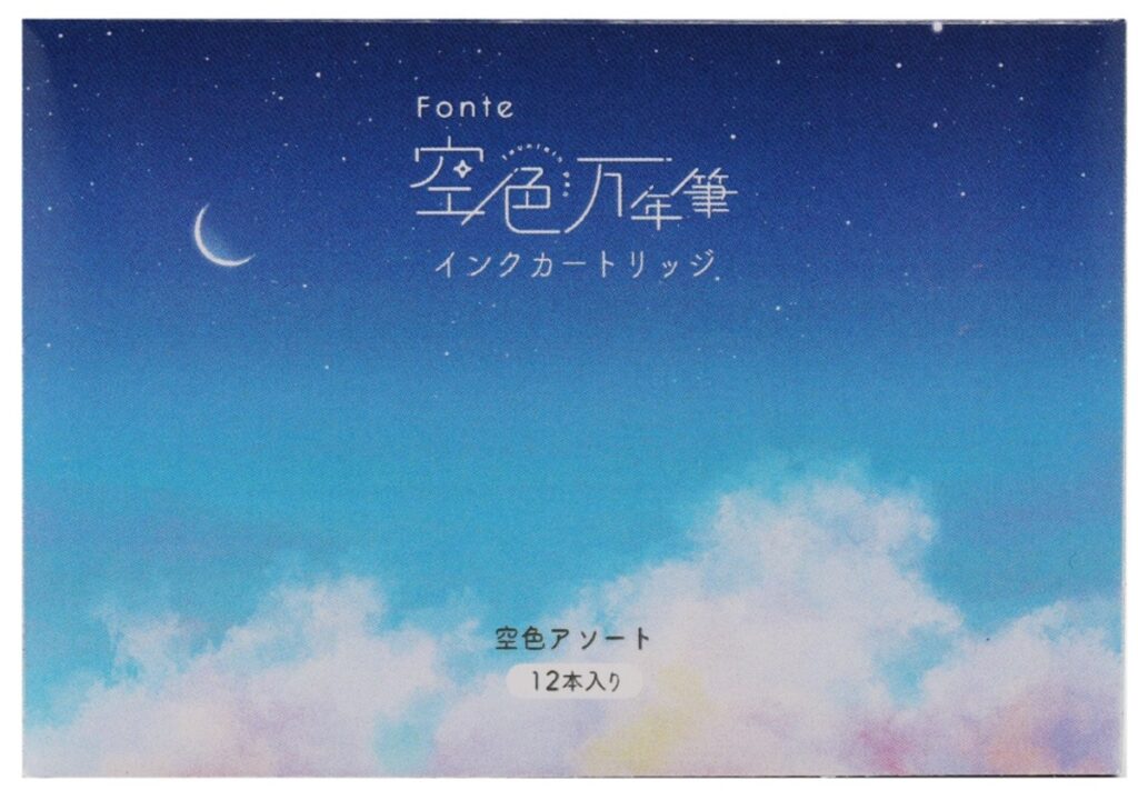 商品には、定番のF字(細字)ペン先に加え、付け替え可能なM字(中字)ペン先もセットされている。M字はF字よりもインクの濃淡が出やすく、万年筆ならではのインクの表情を楽しむことができ、文字を書くだけでなく、アート作品など多彩な用途で活躍する。また、「空」のイメージとマッチする色をセレクトしたインクカートリッジセット「空色アソート」(12本入り)も同時に発売する。