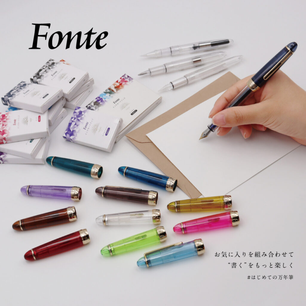フォンテは「#はじめての万年筆」をコンセプトに、好きなカラーのパーツを選んで組み合わせるインクペンで、“書く”がもっと楽しくなる筆記習慣を提案するブランド。万年筆をはじめ、ガラスペンや筆ペン、ローラーボールペンなど、万年筆インクで楽しめるペンを発売中。初心者の方でも挑戦しやすいリーズナブルな価格とカラフルな色使いで支持を得ている。