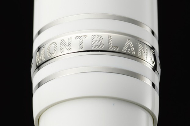 「MONTBLANC」の刻印を施したキャップリング。シルバートリムは「ホワイト」との相性も抜群だ。
