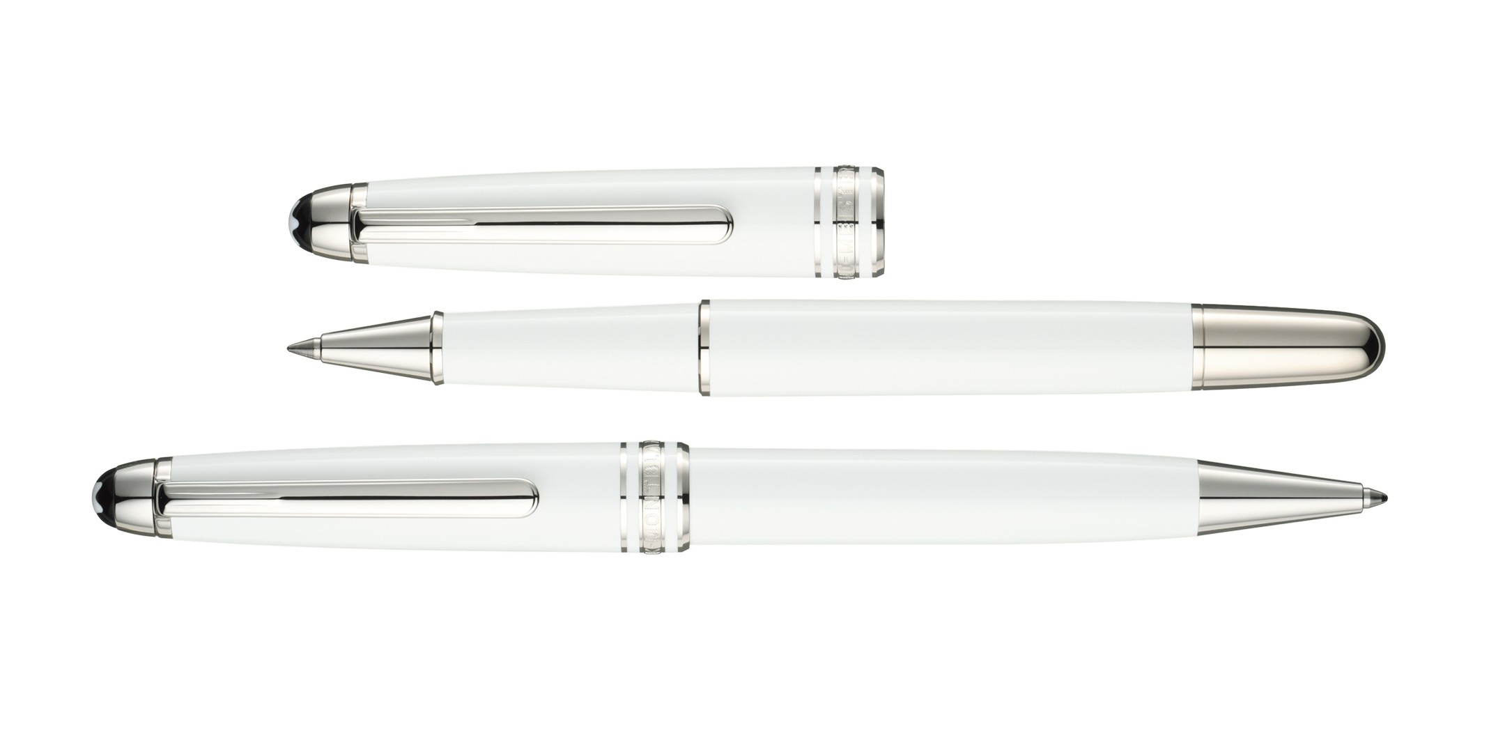 万年筆と同様に、ローラーボールやボールペンでも新色の「ホワイト」が登場している。いずれもクラシックサイズのシルエットを踏襲し、ホワイトのボディとプラチナコーティングのフィッティングによる端正な印象は共通。