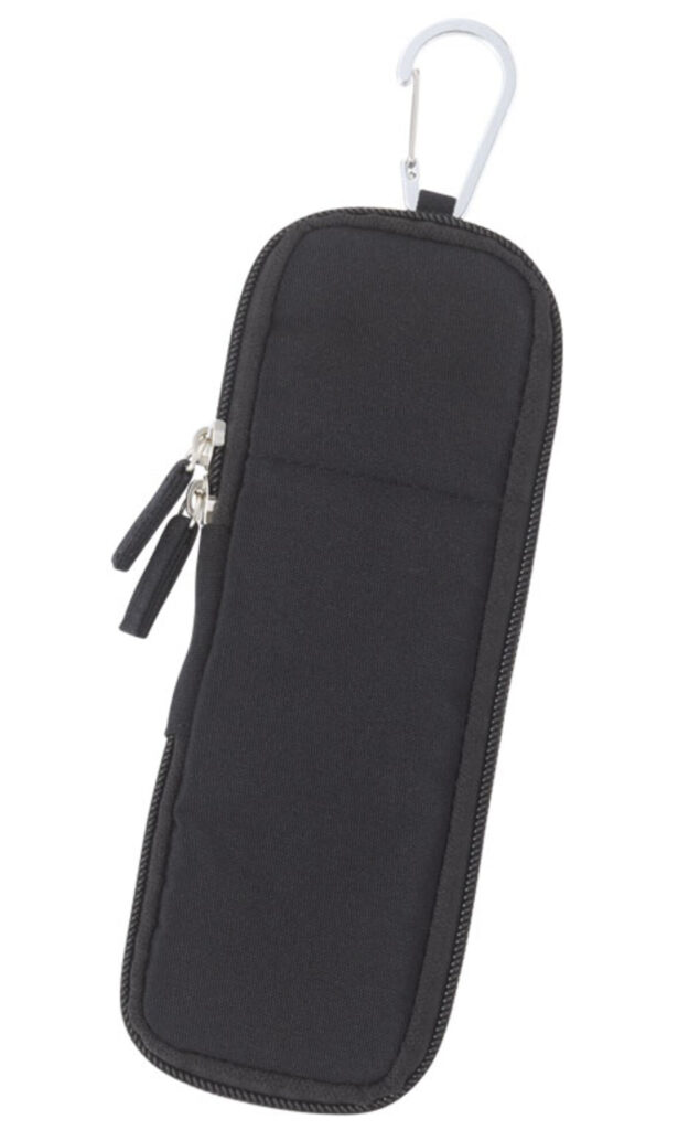 さらに背面には外ポケットが付いており、使用頻度の高いアイテムをファスナーを開けずにさっと取り出せる。また、カラビナ付きなので、バッグに取り付けたり、フックに掛けて使うことも可能だ。