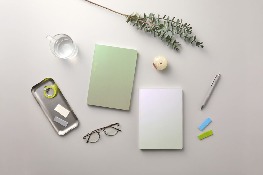 今回登場する限定色は、このノートを使用する時間がより特別なひと時となるようにと、光の角度や環境によって色ときらめきが変化する、偏光パール加工が施された紙クロス生地の表紙を使用。「Aurora Collection」をテーマにした限定の2色は、自然界の神秘「オーロラ」から着想を得ている。