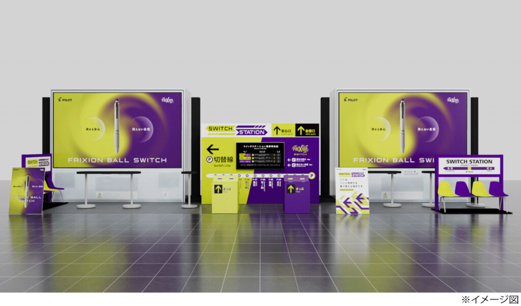 「フリクションボールスイッチ」の発売に合わせて、製品を体験できる「SWITCH STATION」が実施される。JR大阪駅アトリウム広場(2/12(木)~14(土))、JR東京駅八重洲中央口(2/26(木)~28(土))の2つのターミナル駅にて、フリクションボールスイッチ」を特別な空間で驚きの体験と共に試し書きすることができる。また、「駅=旅立ち・乗り換えの場所」ということから、今お使いのペンから新しいペンに乗り換えるという意味をこめて、抽選で「フリクションボールスイッチ」のプレゼント企画も。その後全国のTSUTAYA SHARE LOUNGEでも体験イベントを開催予定。
