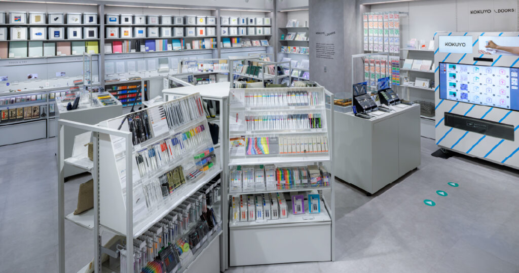 感動の書き心地が味わえる筆記具「KOKUYO WP」や、「2Wayハサミ ハコアケ」をはじめとした日本文具ならではの細やかに作り込まれた機能を体感できるお試しコーナーを充実。さらに、日本初の文具のIoT自販機「ブングスタンド」でのシークレットセット販売による偶発的な文具との出会いが提供されている。