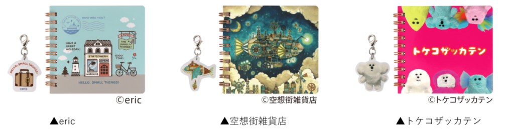 - 商品種類:全15種類(eric/空想街雑貨店/くらはしれい/芝 りさこ/芝山綾乃/中村杏子/トケコザッカテン/Nico-Recipe/ネクタイ/Aiko Fukawa/松尾ミユキ/村田夏佳/Maison terrier/Mokuji/mojojojo)