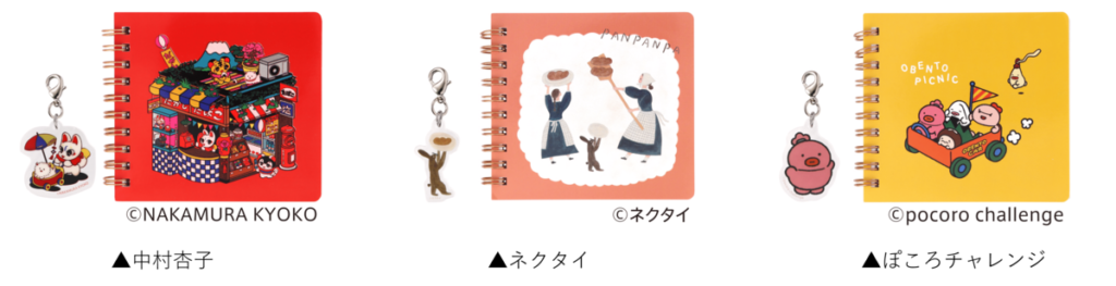 人気クリエイターのイラストを、表紙と、付属のチャームにデザインしたノートだ。持ち歩きに便利な小さめのサイズと、かわいらしい正方形のフォルムが特徴だ。ノートの中身は方眼のシンプルな紙なので、ライフログやジャーナリング、日記帳、推し活など、自由に使い方を決められる。