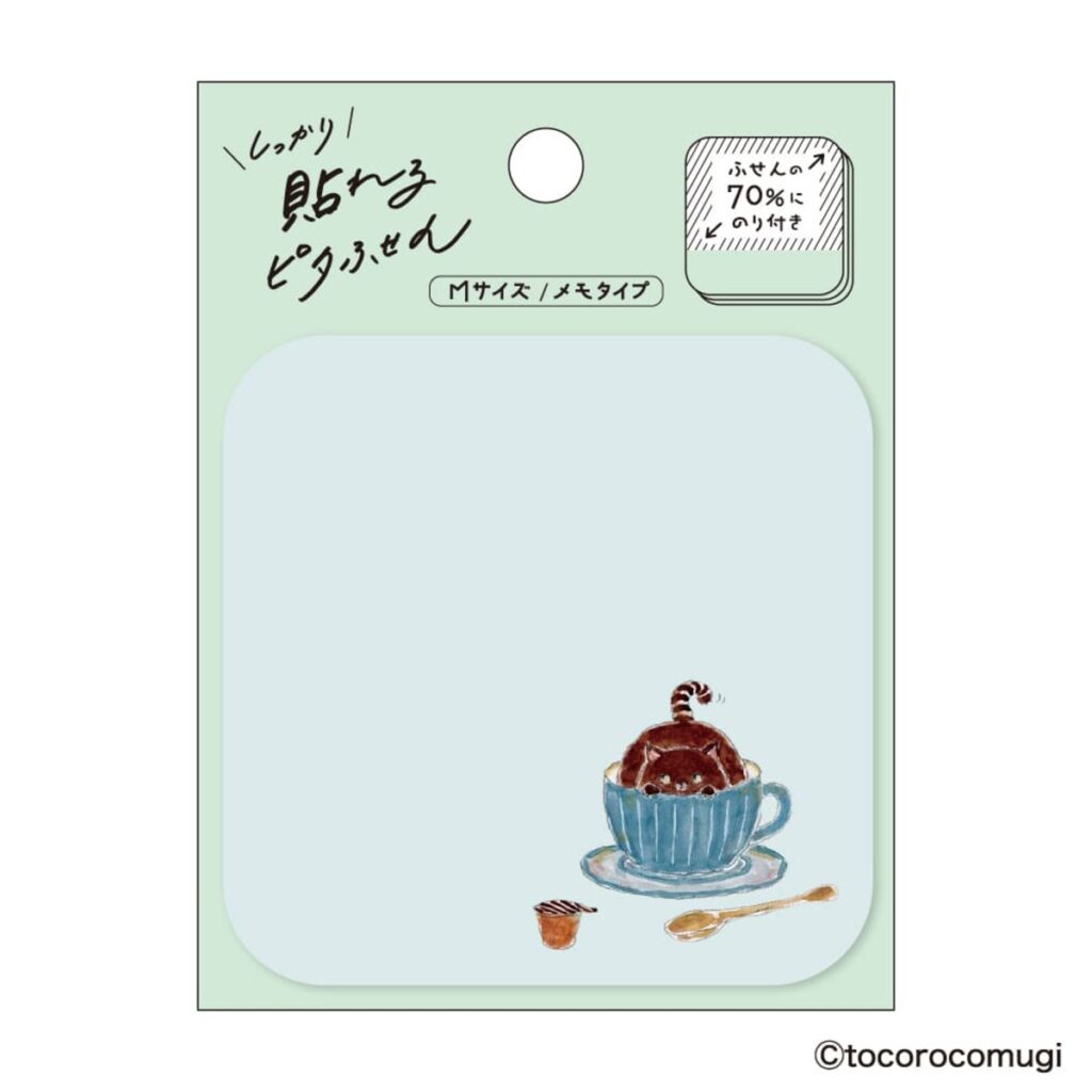 • UTN365しっかり貼れるピタふせん M(メモタイプ)/トコロコムギ 忍びのコーヒーにゃんこ