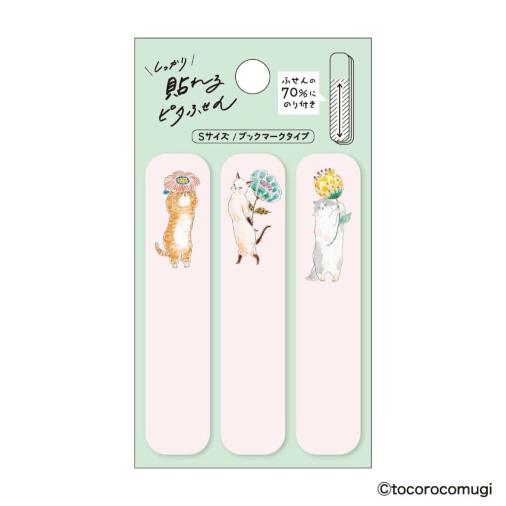 • UTN371しっかり貼れるピタふせん S(ブックマークタイプ)/トコロコムギ お花の妖精さんにゃんこ