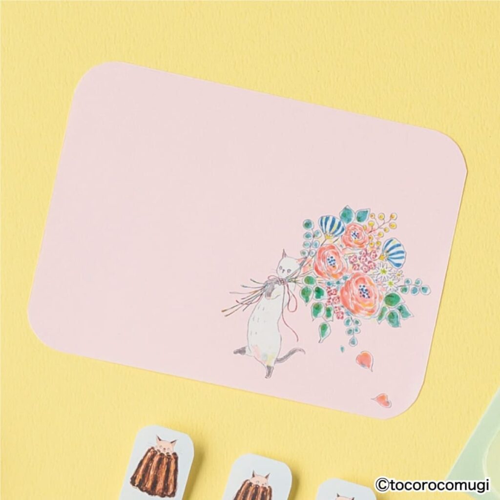 • UTN363しっかり貼れるピタふせん L(メッセージタイプ)/トコロコムギ おおきな花束にゃんこ