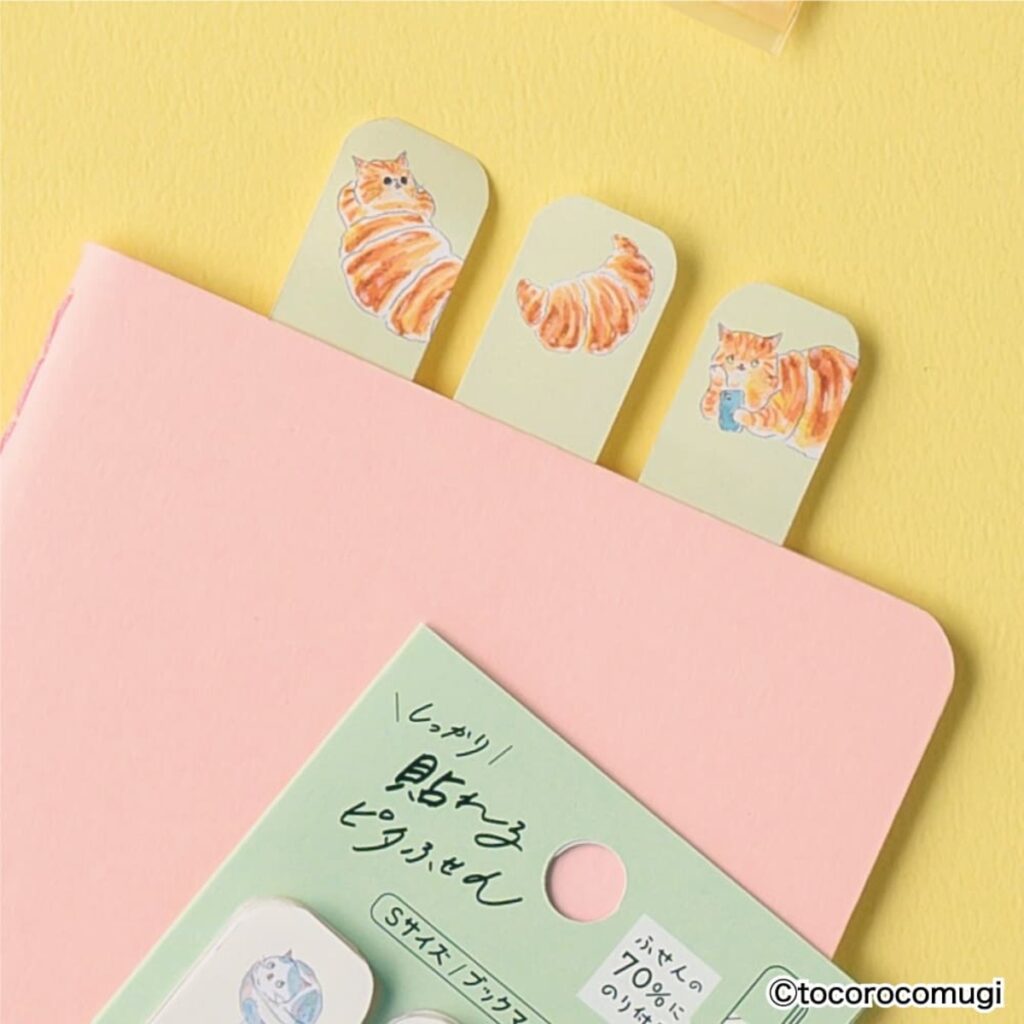• UTN370しっかり貼れるピタふせん S(ブックマークタイプ)/トコロコムギ バカンスクロワッサンにゃんこ