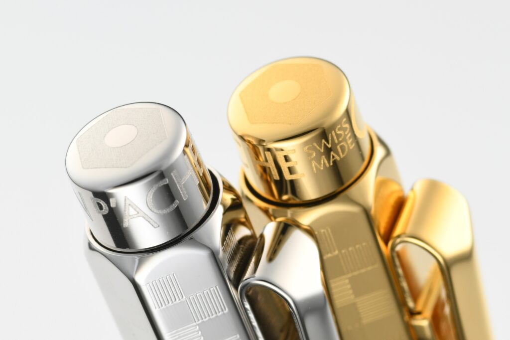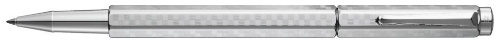「エクリドール」はメタル素材の六角軸に緻密なギロシェ彫刻を施した、カランダッシュで根強い人気を誇るコレクションだ。「ダミエ」は今回、新たに定番柄として加わった。ボディに規則正しく刻まれたパターンは、光の当たり方によって表情を変え、端正な印象を際立たせている。