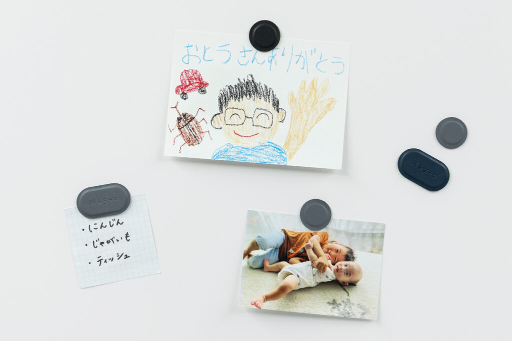 厚さ約3mmの極薄設計のため、インテリアを邪魔せず、メモやレシピ、お子さまの作品などをスマートに掲示することができる。
