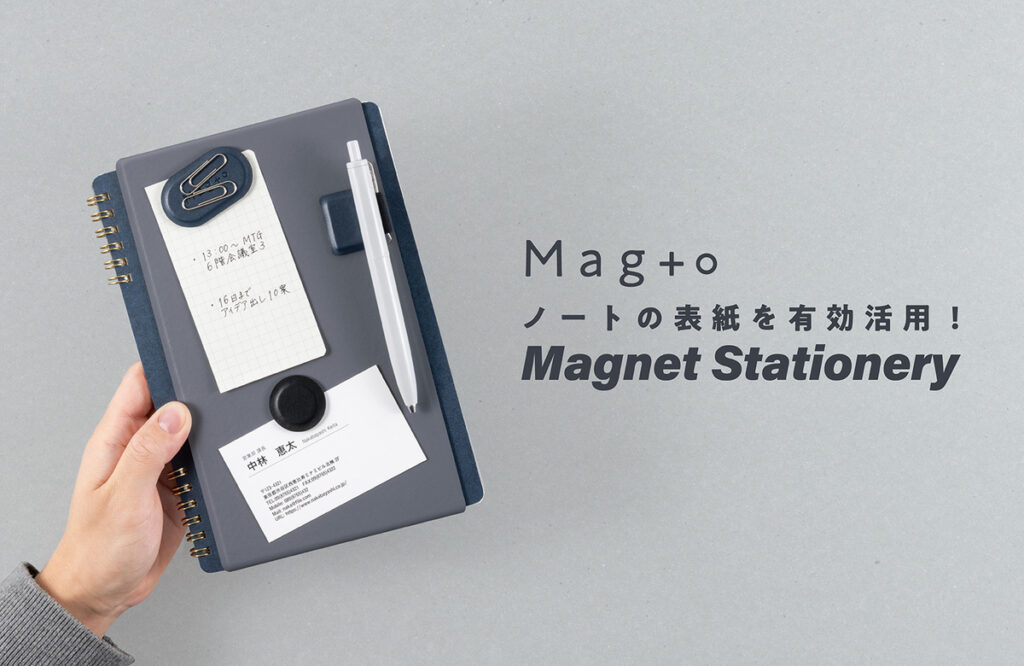 Mag+o(マグト)シリーズは、磁石を使用したスマートな文具シリーズだ。無駄のないシンプルなデザインと磁石の特長を活かした機能で、日常使いからビジネスシーンまで馴染みやすい文具に仕上げた。Mag+oが、現代のワークスタイルに、ピタッと寄り添う。