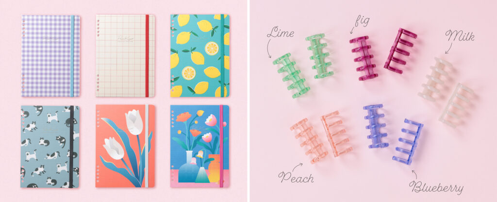 また、人気の「バインダーリング・5 穴」に、「ライム」「フィグ」「ミルク」「ピーチ」「ブルーベリー」の 5 色が加わった。フルーツを思わせるみずみずしいカラーが、ノートの印象を軽やかに彩り、カバーやリフィルとの色合わせも楽しめ、コーディネートの幅が広がる。