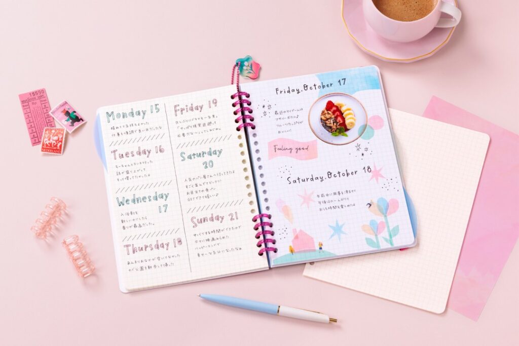 さらに、「日付フリー・週間バーチカルリフィル・A5」をラインアップに追加。既存のダイアリーリフィルと同じく、手帳用紙「NEO AGENDA」には「ラベンダー」、クリーム系用紙には「テラコッタ」がフォーマットカラーとなっている。3分割のウィークリーが特徴なたっぷり書けるシンプルなフォーマットで、予定管理はもちろん、ライフログにも活用できる。