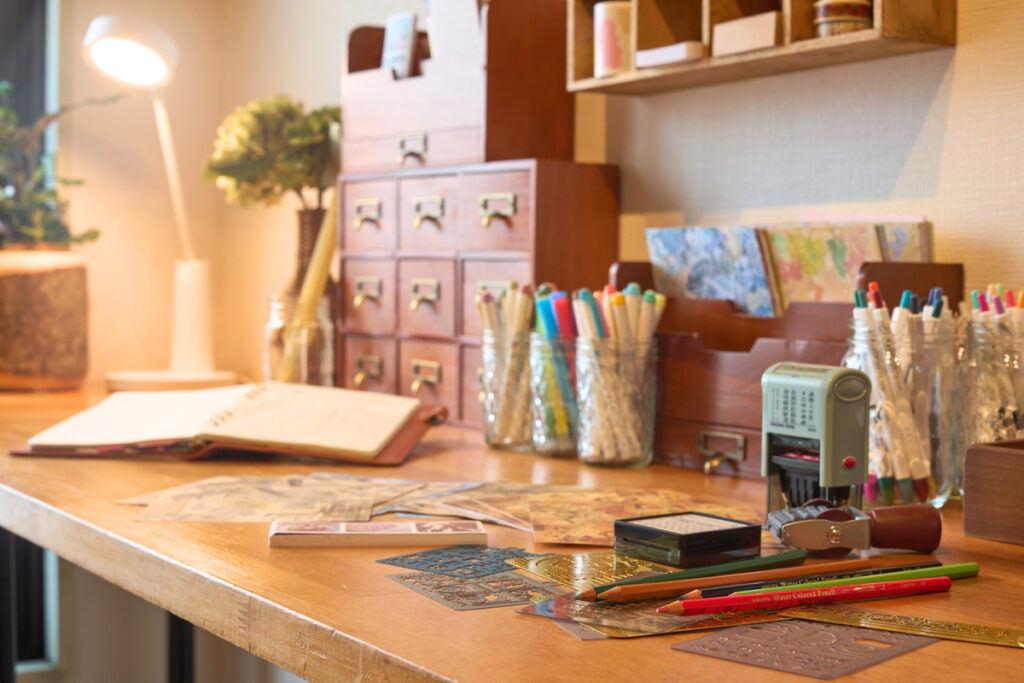 手帳を書くことがいつの間にか日々のルーチンとなり、買ったばかりの頃の「ワクワクする感覚」が薄れてしまった方へ。広いデスクにお気に入りの文具を広げ、誰の目も気にせず、ただ静かに手帳と向き合う。その深い没感が、「あ、やっぱり書くの好きだな」「なんか無性に開きたくなる」という、「静かな高揚」を呼び覚ます。