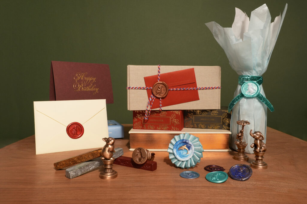 古代から重要な文書の封印などに使われ、現代では手紙や招待状の装飾、プレゼントのラッピングなど、様々な用途で楽しまれているシーリングスタンプ。「アニマリエ」の8種類の動物たち(ウサギ、ペンギン、フクロウ、カエル、カメ、イルカ、キツネ、ゾウ)は、それぞれラッキーモチーフとしての意味を持ち、世界で幸運のお守りとして愛されている。手紙やギフトに心からの幸せを願う想いを添えて。大切な方との気持ちのつながりが深まることだろう。
