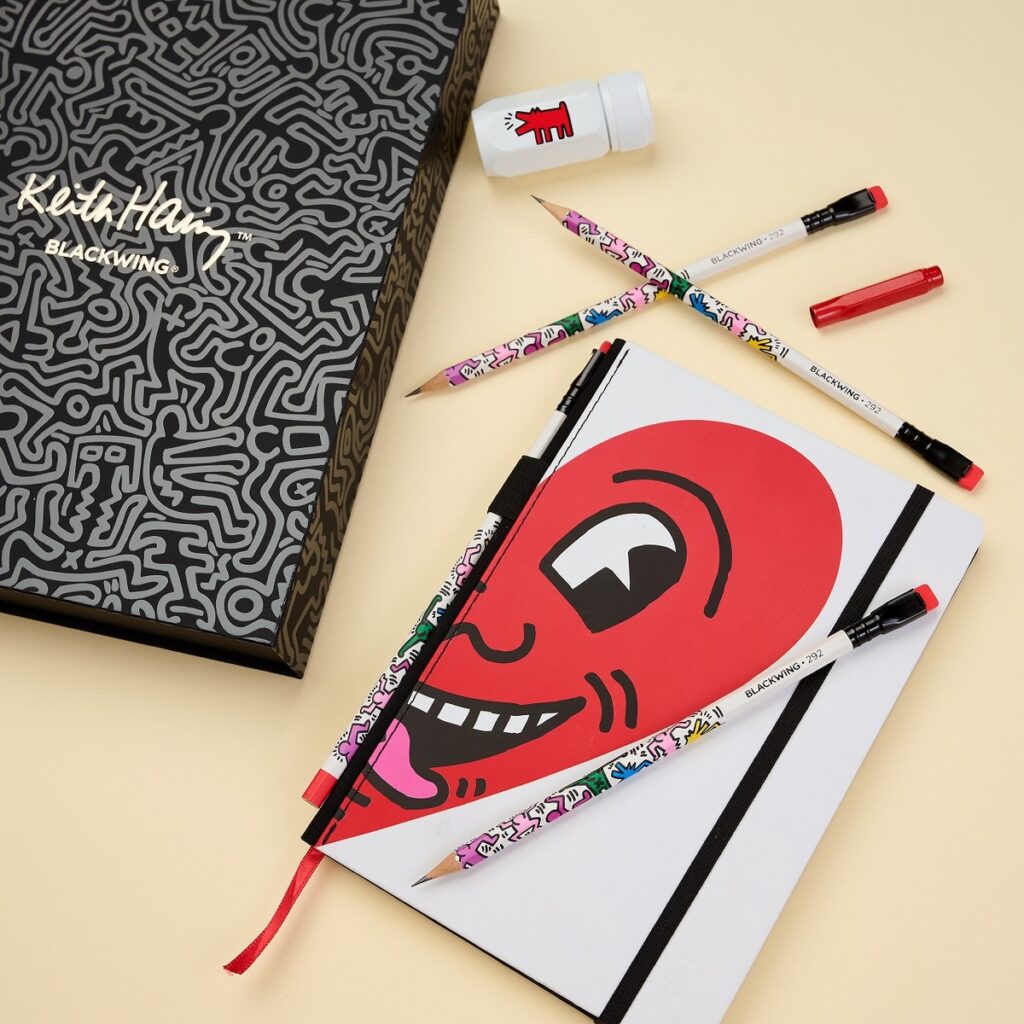 鉛筆、ノートブック、ギフトセット、アクセサリーの随所に、彼の象徴的なアートワークをあしらい、ブラックウィングならではの上質な筆記体験と融合した。
