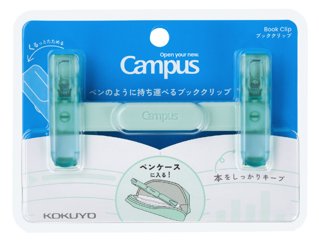 ①コクヨキャンパスペンのように持ち運べるブッククリップ